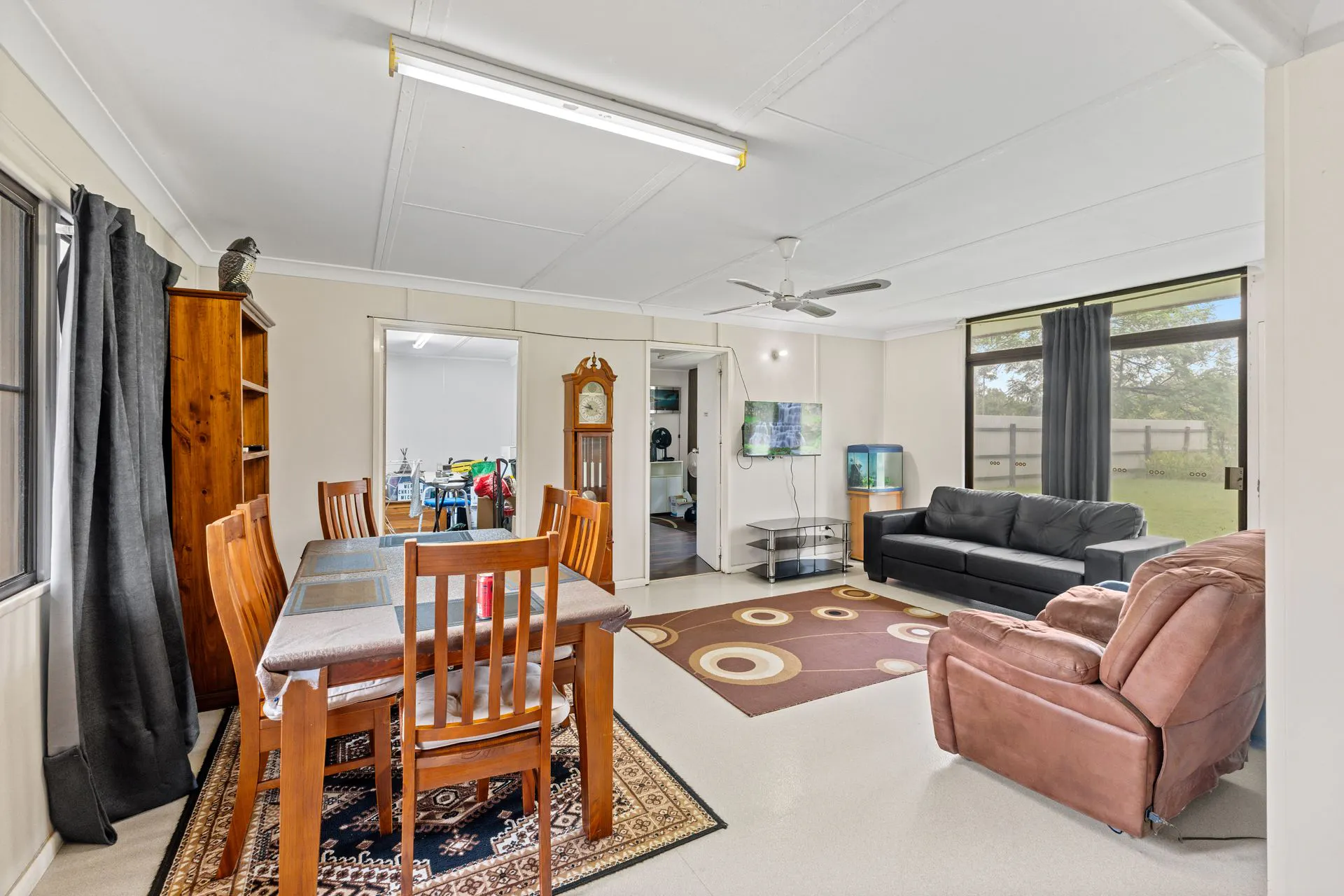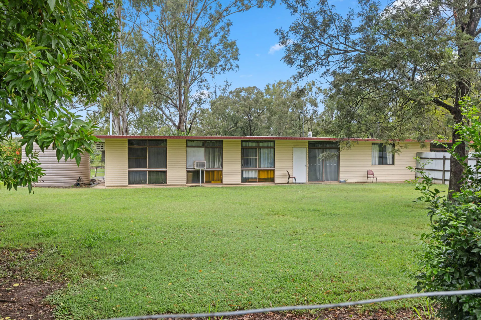 The residence is configured as two adjoining Unit Dwellings, providing flexible accommodation suited to extended family living, dual occupancy use or supplementary rural income potential. Each section is set within a cleared homesite area surrounded by mature shade trees and established gardens, creating a comfortable homestead environment separate from the broader acreage paddocks and creek banks.