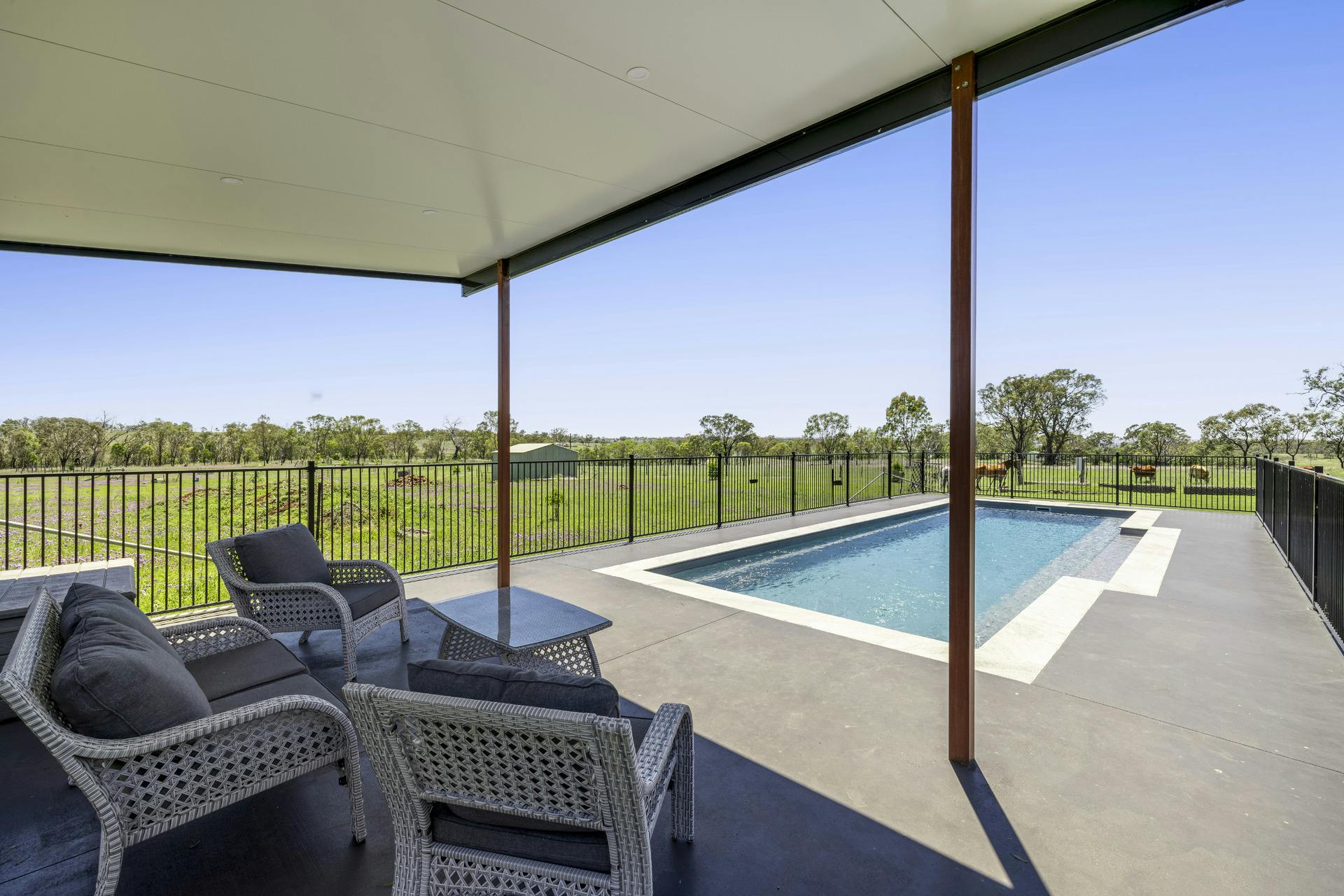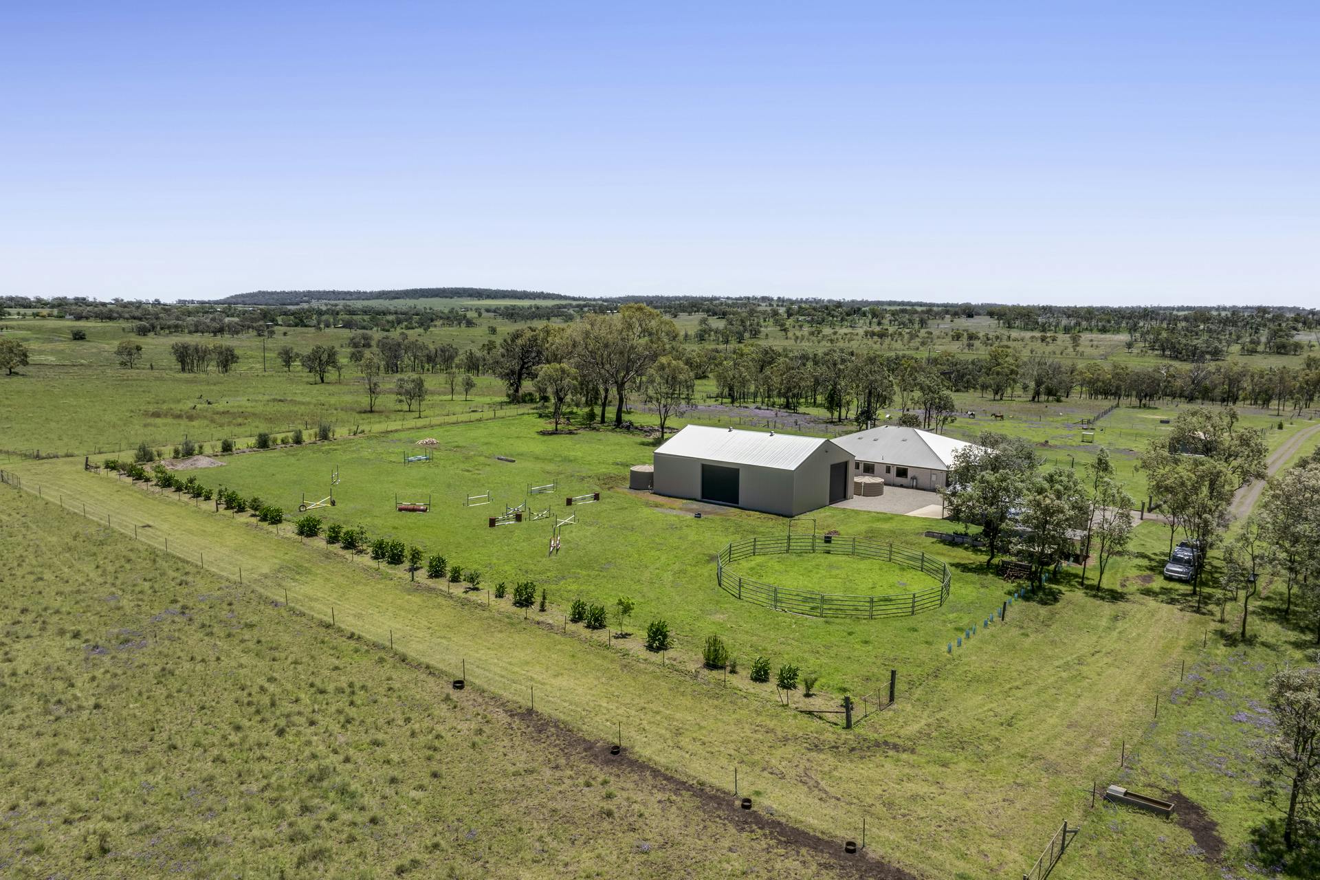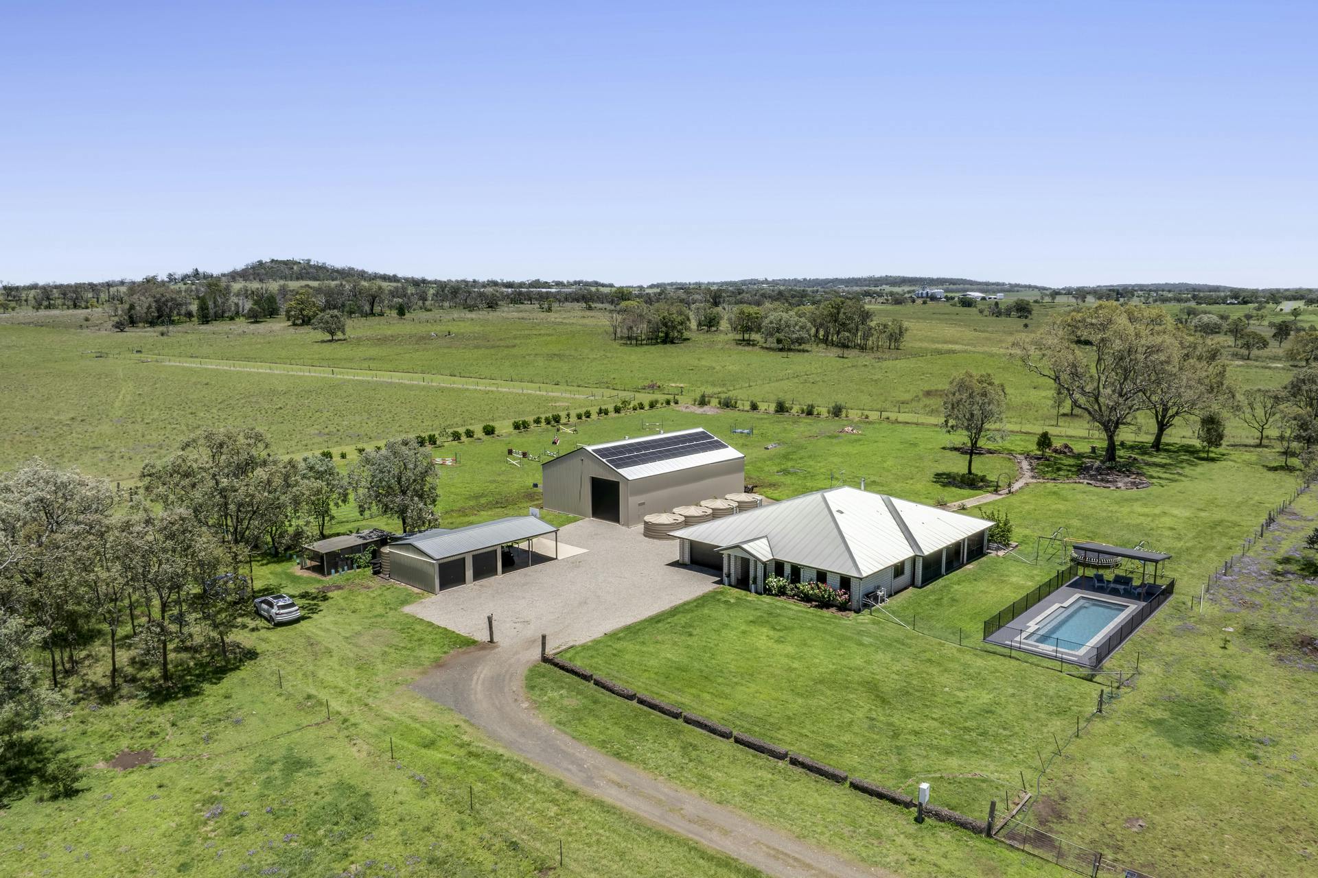 Marlyn Ridge is a superb 75.5 Acre Versatile Grazing and Lifestyle property package that ticks all the boxes. Offering you a large four bedroom modern executive home with inground pool, a large high clearance commercial grade shed, plus a combined double lockup garage and carport, large horse riding arena or multipurpose pad, additional storage shed, and a windmill over bore and 8 x 5000 gallon water storage tanks. Situated just 15 minutes from Toowoomba, 5 minutes out from Wyreema, and less than 10 mins on to Pittsworth, through Southbrook.A Quick Property Summary includes the;