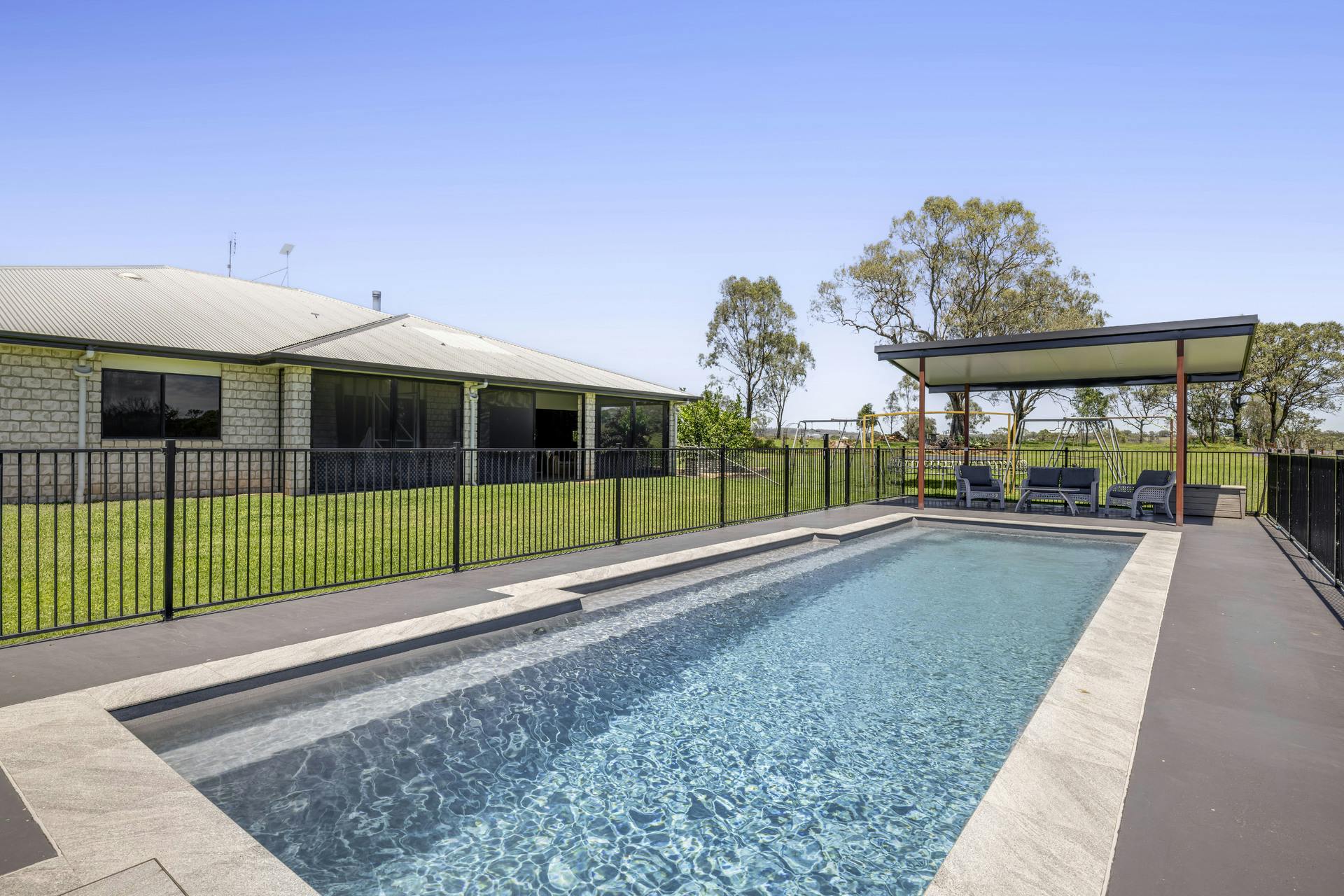 • Inground Narellan pool approx. 12 metres long with a covered outdoor area beside.