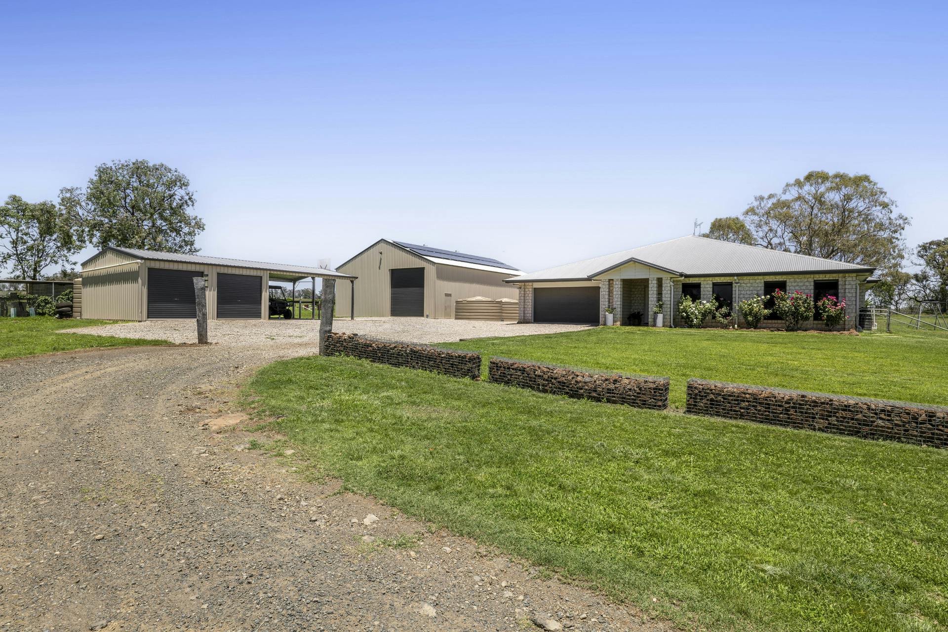• Extensive plantings of a variety of seven different types of Nut Trees and an Olive Tree grove featuring three different varieties. Pinoak Trees line the entrance driveway and over 100 young Eucalypt shade trees have been planted along the boundaries and along the internal laneways.
