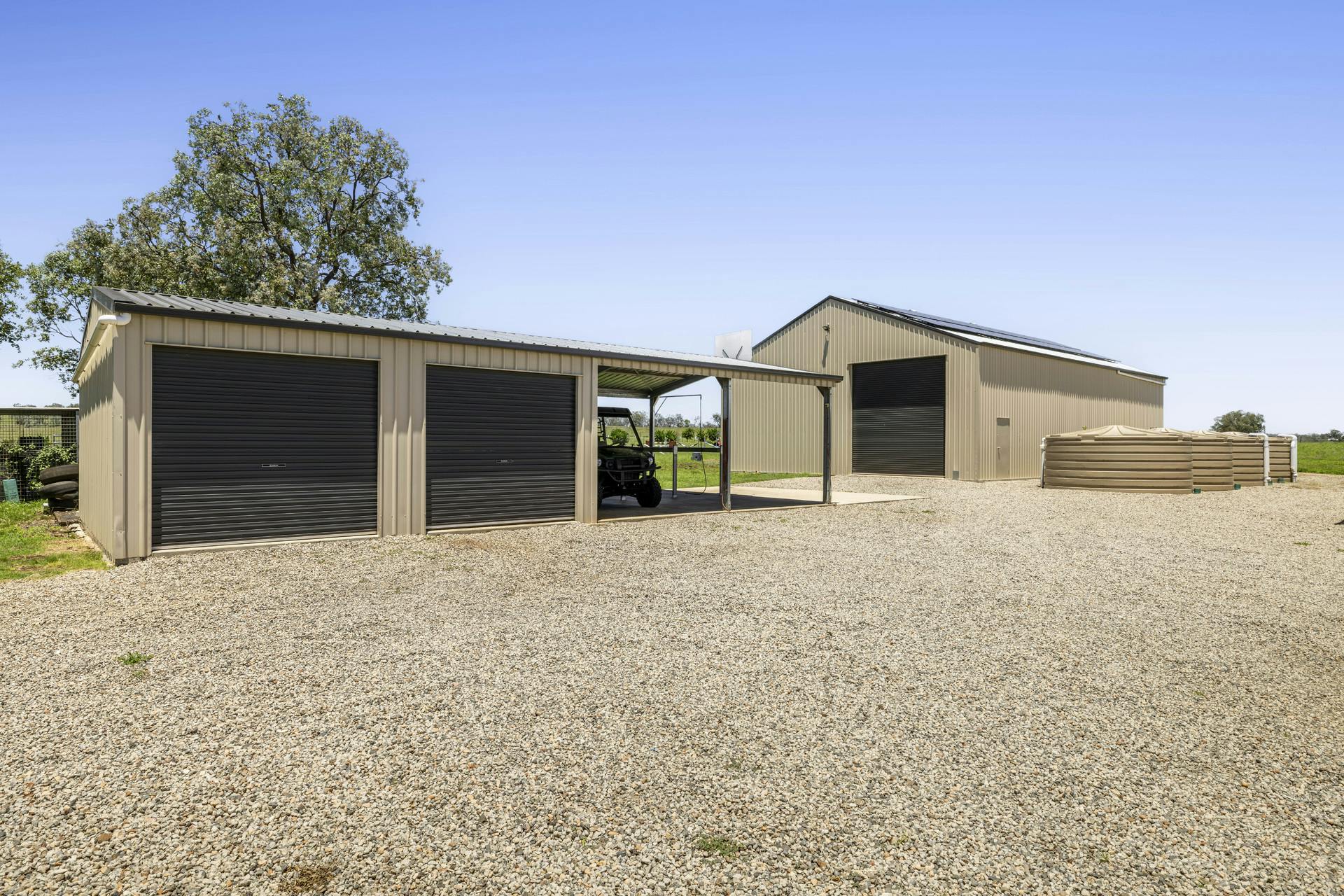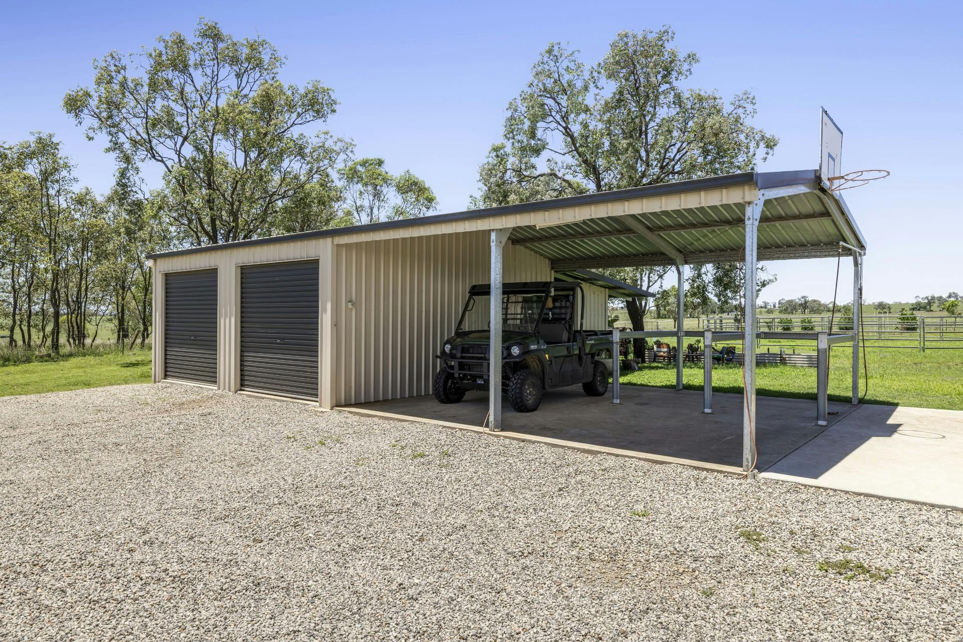 • A 6 x 6m double lock up color bond powered shed is joined by a 6 x 6m double carport, and handy 3 x 4m feed/storage shed. Plus a 6 x 6m hay or utility shed in the front paddock.