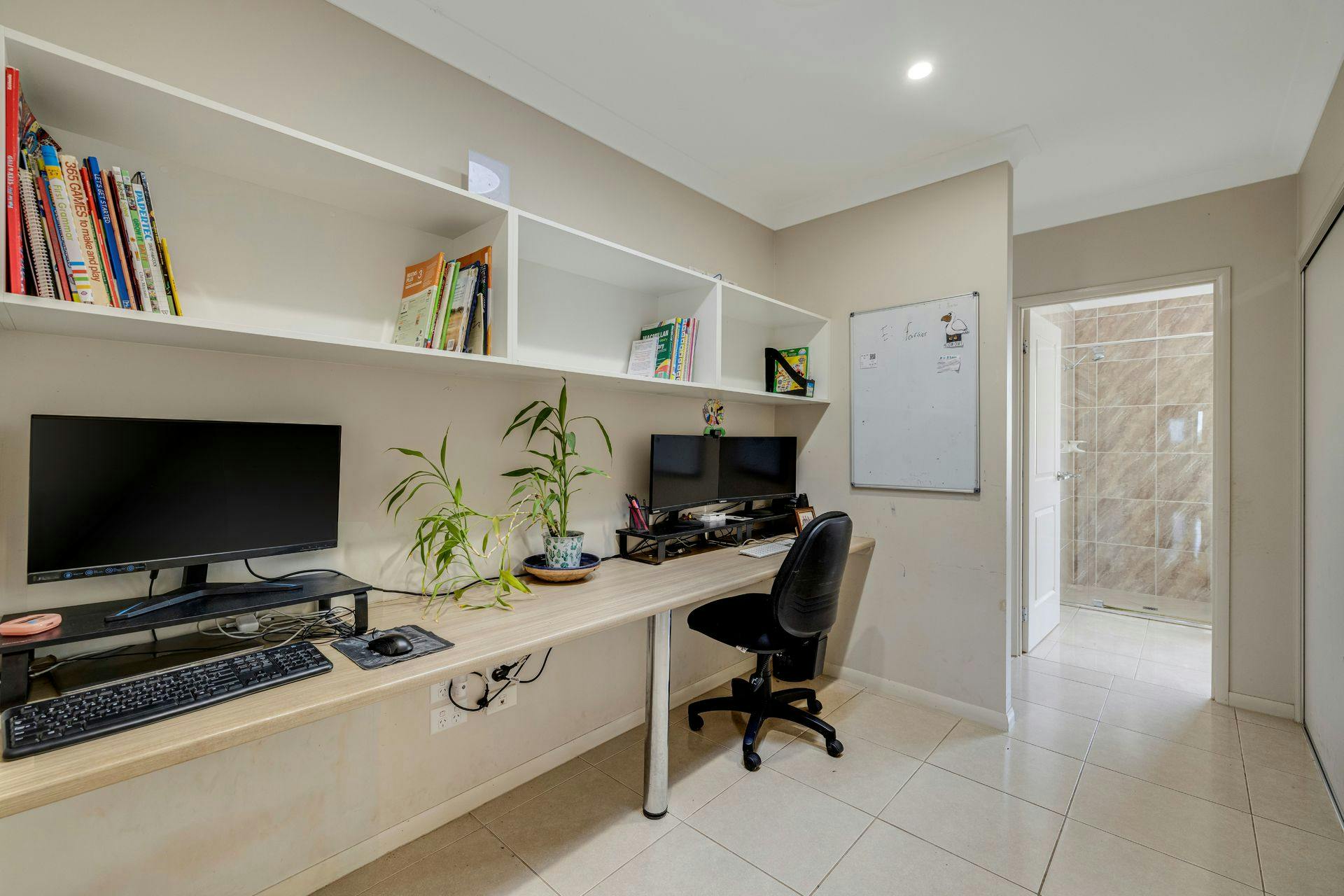 The Activities or Rumpus room is a big practical convenient space designed as the kids domain or a visitor's separate retreat. The galley style office has plenty of desk space for two or more computer stations. A corridor of linen cupboard storage runs along the whole length of the office rear wall.