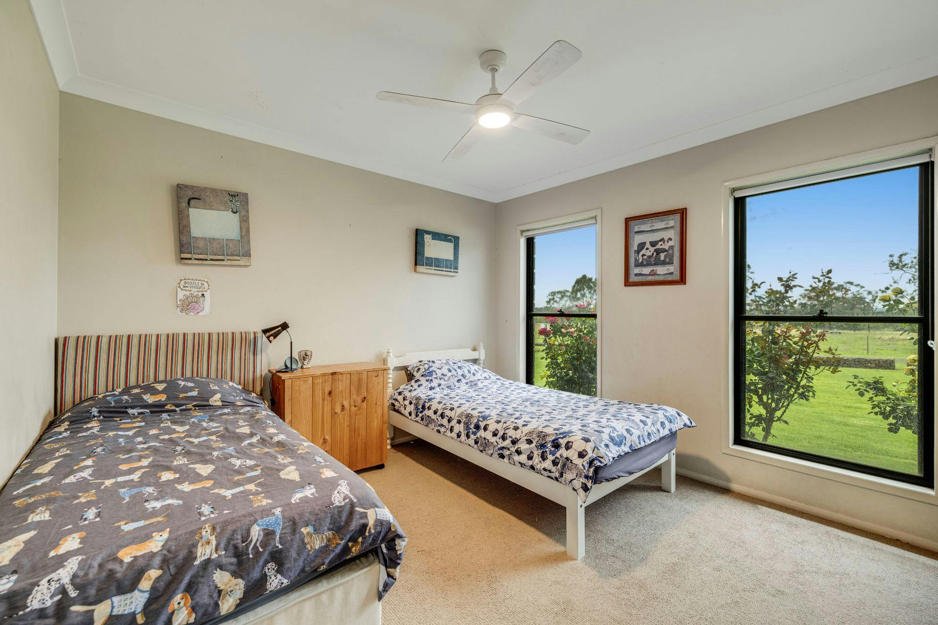 The other three family or guest bedrooms are also generous in size as seen on the floor plan. Two of which have a full wall of built in robes, and the fourth a double door robe.