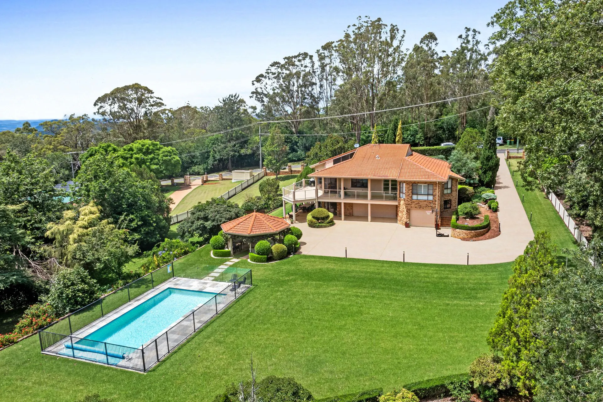 A large quality home of very generous proportions set on a private acreage allotment of 4126m2 on the edge of the range with views over the escapment.In brief, this huge home offers ducted air-conditioning throughout open plan kitchen and 4 living areas including an enormous rumpus/theatre room, 5 built in bedrooms, 3 bathrooms, a professional size office or 6th bedroom, 3 covered outdoor entertaining areas, an oversized 3 car garage plus a further double colourbond garage and carport, and an inground solar heated salt-chlorinated swimming pool, all set among the beautifully established expansive landscaped gardens and lawns.