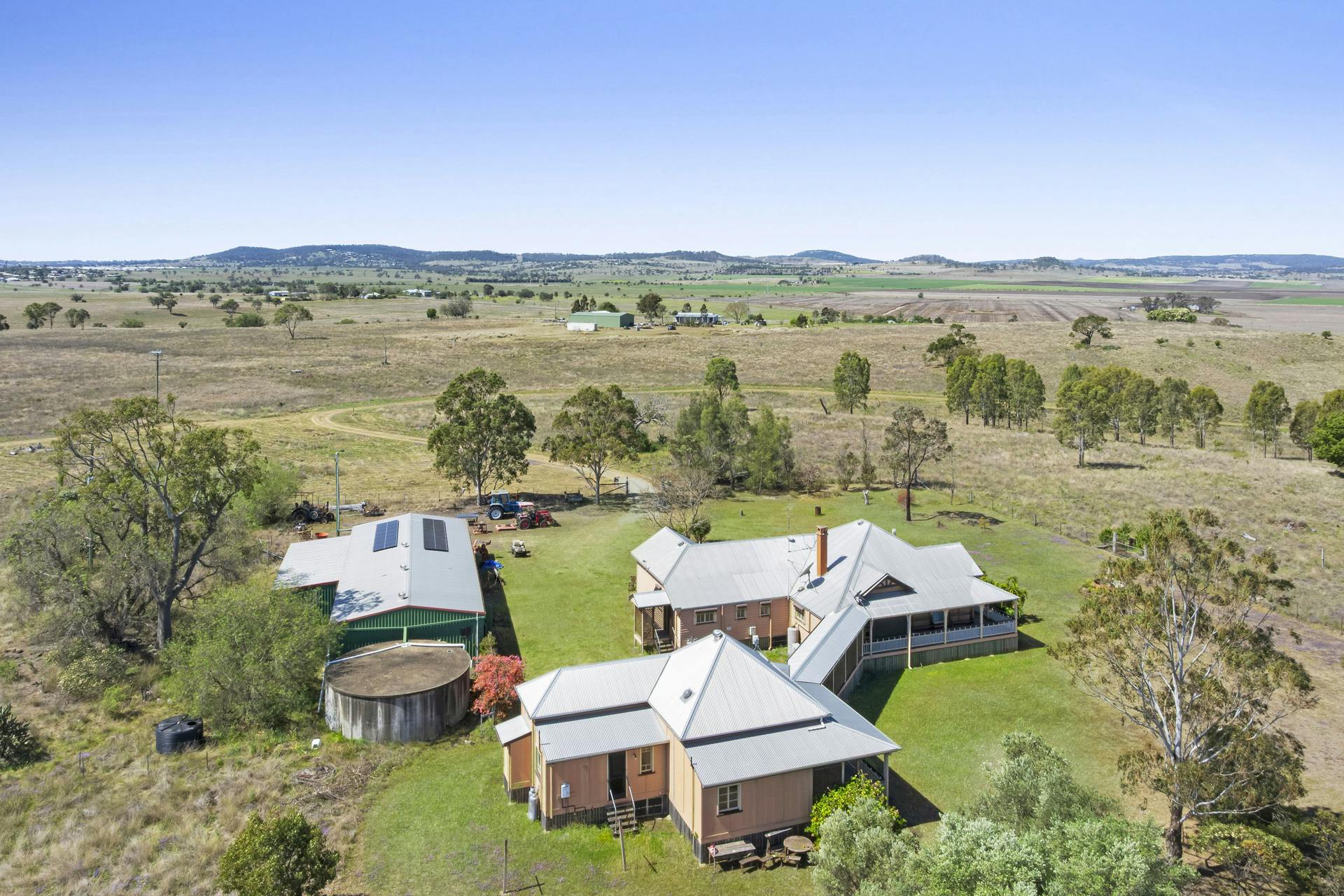 "Rossmore" represents a unique opportunity to acquire an outstanding Homestead and a Cottage in private and scenic location enjoying commanding views set on 109 Acres of grazing property, suitable for your choice of livestock. It comes with a 33 Meg. Irrigation Water Licence, a good bore, and an excellent combined machinery & workshop shed, and other storage buildings. All situated just 15 minutes drive from Toowoomba's CBD, with all the services and facilities that the city has to offer.The main homestead is a large classic quintessential Queenslander, connected via a covered verandah walkway across to the second home, a matching character three bedroom cottage.